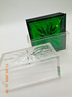 Vintage Lucite Green 4 Coasters Set In Case Starburst Mcm