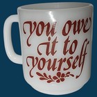 Vintage Glasbake Milk Glass Mug Tea Coffee Cup 'you Owe It To Yourself' 60's