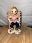 Vintage Ceramic Boy Coin Bank Dollar Sign Money Figurine Japan Novelty