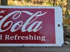 Vintage Drink Coca-cola Delicious And Refreshing Porcelain Sign 12"x4"