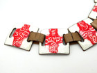 Vintage Red White Enamel On Copper Pannel Bracelet Mid Century