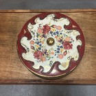 Vintage Round Tin With Lid Red White Floral Gold Daher England Metal Storage Box