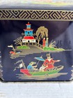 Vtg Daher Tin Box Canister Blue Floral Asian Lid Made In England Blossom Trinket