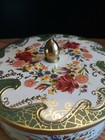 Vintage Hinged Tin Metal Box Gold Floral Container