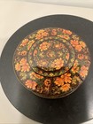Vintage Daher 6" Tall (w Lid) Floral Lidded Tin With Black & Floral Design, Nice