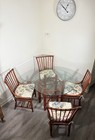 Vintage Glass Top Dining Table With Bamboo Rattan Chairs – 5-piece Set