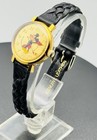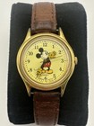 Vintage Gold-tone Disney Time Works Mickey Mouse Women’s Watch Brown Wristband.