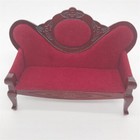Vintage Dollhouse Miniature Sofa Chairs Red Velvet Living Room Furniture Set