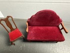 Vintage Dollhouse Miniature Furniture Sofa Couch And Chair (flaws)