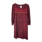 Vintage 70s 80s California Girl Red Navy Print Belted Midi Dress Long Sleeve 14