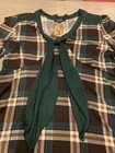 Nwt Suzanne Betro Vintage Cotton Dress Green Brown White Plaid Tie $77 Sz Large