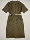 Vtg 60s Countrywide Shirt Dress Macshore Classic Brown Cotton Belt Pintuck 13/14