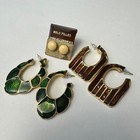 Lot Of Vintage Earrings Pearlized Enamel 70s Gold Emerald Green Brown Statement