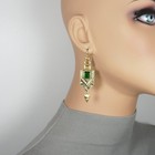 Vintage Art Deco Gold & Green Aztec Boho Statement Earrings, 18k Gold Ear Wires