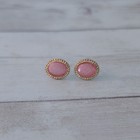 Vintage Stud Earrings Pink With Gold Tone Halo - Oval - Dainty - Some Tarnish