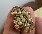 Vintage Gold Tone Faux Pearl Filigree Leaf Clip On Earrings 1" Estate Jewelry