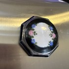 Vtg Guilloche Enamel Powder Compact Clear Mirror Hand Painted Pansy Lg. 3.5"