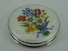 Vintage Marhill Powder Compact Guilloche Enamel Painted Flowers