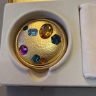 Vintage Estee Lauder Golden Jeweled Top Powder Compact With Felt Pouch & Box