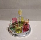 Vintage Farberware Chrome Cordial Caddy With 6 Multicolor Glasses