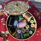 Vintage Floral Daher Decorative Tin Round W/lid Sewing Kit, Made In England