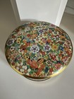 Vintage Daher Made In England Metal Textured Mosaic Floral Round Tin