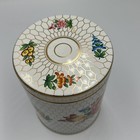 Vintage 4.75” Floral, Gold And Beige Hinged Tin Container Made In England