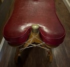 Vintage Camel Saddle Carved Wood Red Foot Stool Ottoman Mahmut Aykuto Turkey #11