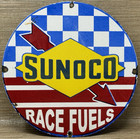 Vintage Sunoco Racing Gasoline Porcelain Sign Dealership Gas Station Motor Oil
