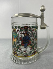 Vintage German Pewter Lidded Beer Stein Medieval Scene Verse Panel