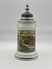 Antique Lidded Mug Pewter Lid German Beer Stein