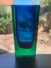 Vintage Mid Century Modern Swung Glass Vase Blue & Green 12''- 15 1/2" Slim ✅📝