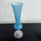 Vintage Blue Satin Frosted Glass Footed Trumpet Vase Mcm 8.5”