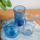 Vintage Blue Crackle Glass Vase 6" Tall 4.5" Diameter