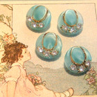 Antique Vintage Frosted Glass Button W/rhinestones Gold Luster 5 Sets, Lot 29 Pc