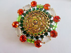 Xl Stunning Czech Vintage Style Glass Rhinestone Button Peridot & Red & Multi
