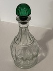 Vintage Clear Pressed Glass Decanter W/ Emerald Green Ribbed Stopper Bar Bottle