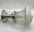 Vintage Industrial Mcm Ribbed Milk Glass Flush Mounted Ceiling Nickel Fixture