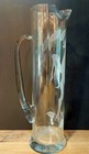 Vintage Tall Martini/ Cocktail Pitcher Etched Clear Glass 13" Applied Handle