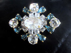 Gorgeous Czech Vintage Glass Rhinestone Button Crystal Clear & Center Blue