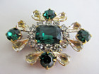 Outstanding Czech Vintage Style Glass Rhinestone Button Crystal & Emerald Green