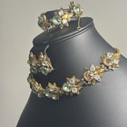 Vintage Handcrafted Jewelry Set Necklace Bracelet Earrings Crystal Gold Tone