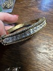 Vintage Bracelet Earrings Clips Set Bangle Acrylic Huge Gold Tone Estate Sale*