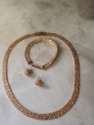 Vintage 1980's Luxury Gold Plated Nugget Style Necklace Bracelet Earrings Set