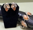 Schiaparelli Style Vintage 1960s Watermelon Stone Gold Bracelet & Earrings Set