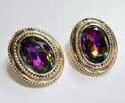 Vintage Gold Tone Aurora Borealis Rhinestone Bracelet Clip Earrings Set