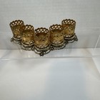 Vtg Lipstick Tube Makeup Holder Tray Gold Gilt Ornate Metal Hollywood Regency