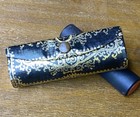 Lipstick Tube Holder W/mirror Vtg Blue, Satin Gold Thread Embossing 3 1/2"x 1"