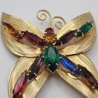Vintage Butterfly Rhinestone Pendant Mid Century Modern Gold Tone