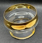 Vintage Footed Glass Cup Soup Bowl Gold Band Trim 2 3/4" High Mid Century Modern